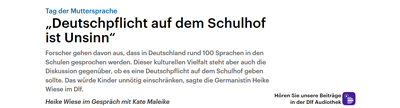 Faculty of Language, Literature and Humanities | Department of German Studies and Linguistics | RUEG | Radio Interview Radio Interview dlf.jpg image/jpeg Type image/jpeg Dimension Dimension 400x108 Size File size 31.1 KB Download View full-size image
